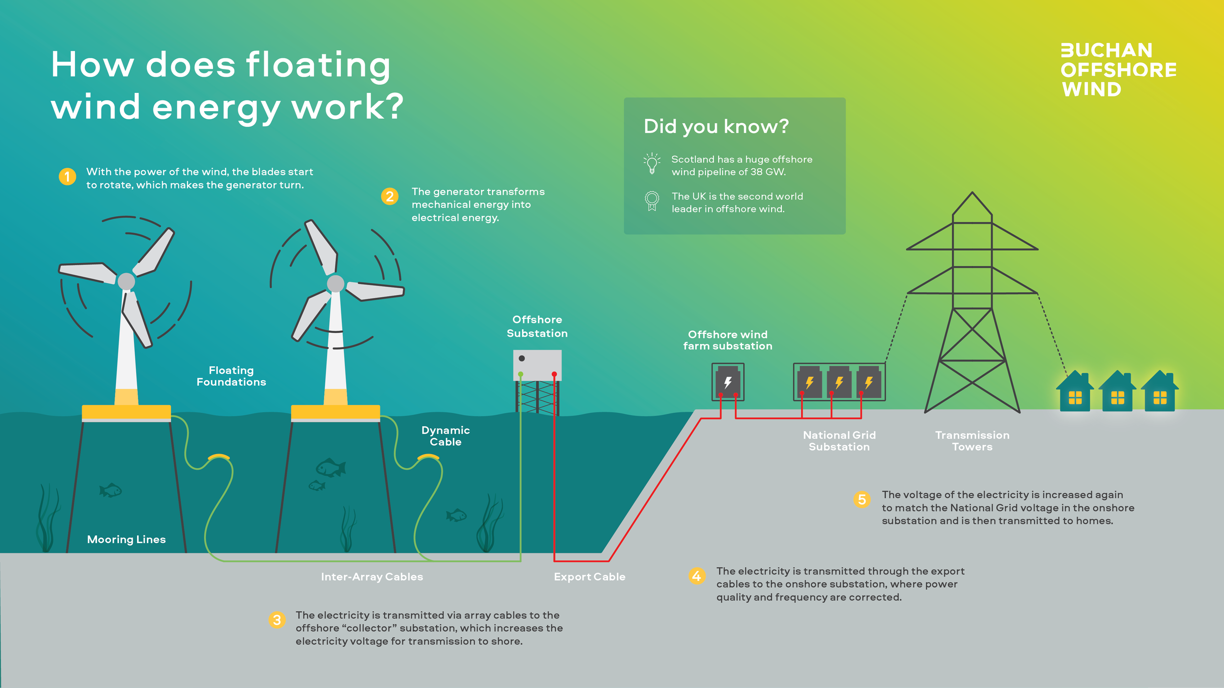 It will put Scotland at the forefront of floating wind and bring significant benefits for Scotland’s supply chain, skills and employment opportunities. Our commitment to build the project’s unique concrete floating barges in Scotland will create Scottish manufacturing jobs to deliver the project.